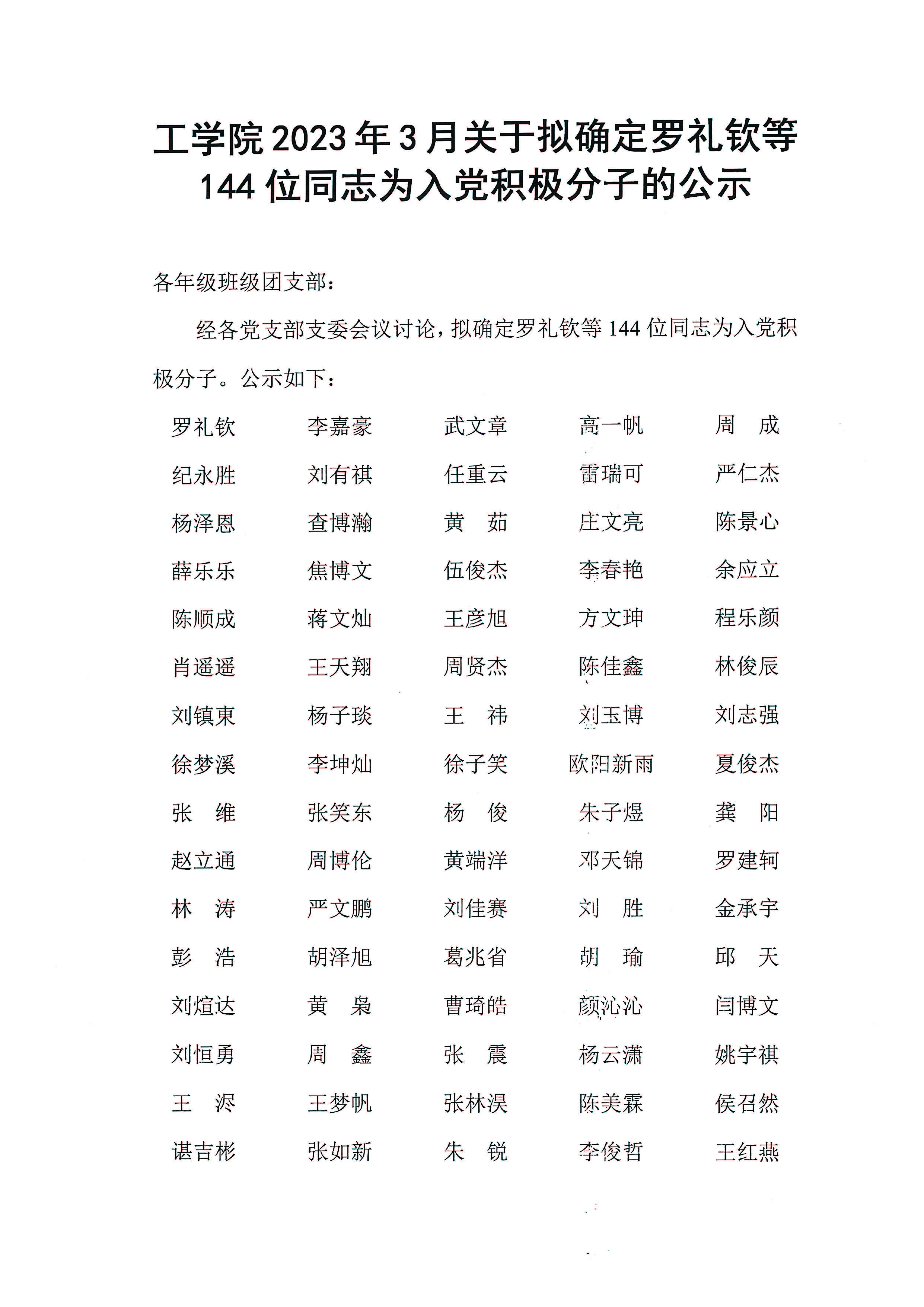 英国上市公司官网3652023年3月关于拟推荐罗礼钦等144名同志为入党积极分子的公示