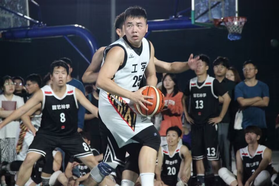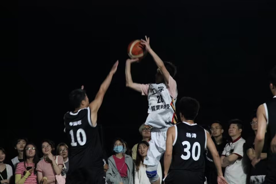 “狮子山杯”篮球赛中,随着主裁判的一声哨响,比赛开始,双方进行跳球争夺。开局工学3号崔前锦和14号魏函志接到内线一传连续快攻反击三分打进,内线与外线之间的联动打出9-0的小高潮。随后生科学院叫出暂停,进行战术布置。比赛继续,生科学院77号找到机会完成空位三分中投追分稳住局势。见状,工学叫出暂停,随后工学内线11号黄子泱和27号王秋丰低位单打翻身跳投上下连线,撕破生科学院内部防线,两分连续打进持续扩大优势。最后,工学队长25号杨泽华压哨三分应声如框,分差持续扩大,首节战罢,工学凭借着高效的进攻以及坚固的防守,比分拉到19-4。