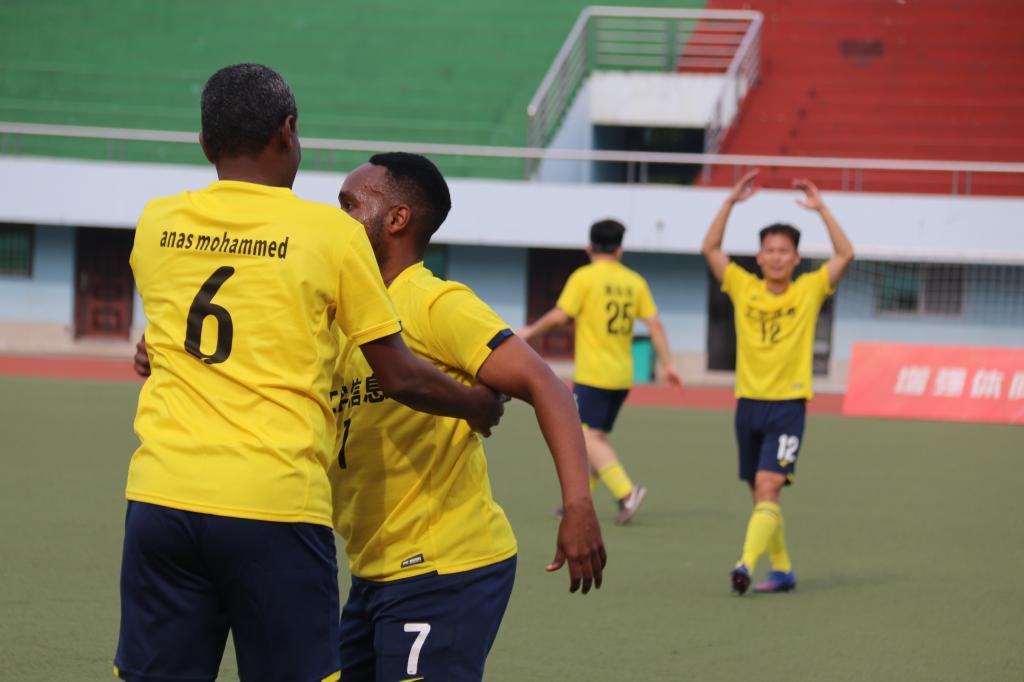 下半场,双方易边再战,战局刚开始动科动医学院就再次犯规,工信联队获得绝佳的任意球机会,Anasmohammed操刀任意球,但可惜力量稍大,擦着球门横梁飞出。在此之后,动科动医学院趁势反击,好在门将沈威再次化解对方射门,力保城门不失。