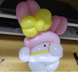 另一边,活动开始之前,部门成员就事先通过网络学习了几种气球造型的编织,活动当天将编织好的气球玩偶展示出来,路过的同学们大都被精美可爱的造型吸引,上前询问气球玩偶的制作方法,工作人员也积极主动地教授经验,遇到有些较难的步骤同学们还主动地去帮助身边地同学完成。最终,我们的镜头里出现了一只只可爱的气球小狗、气球小兔子、气球菠萝吹雪等创意作品。