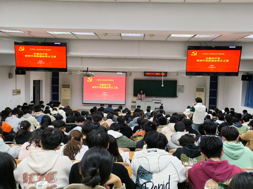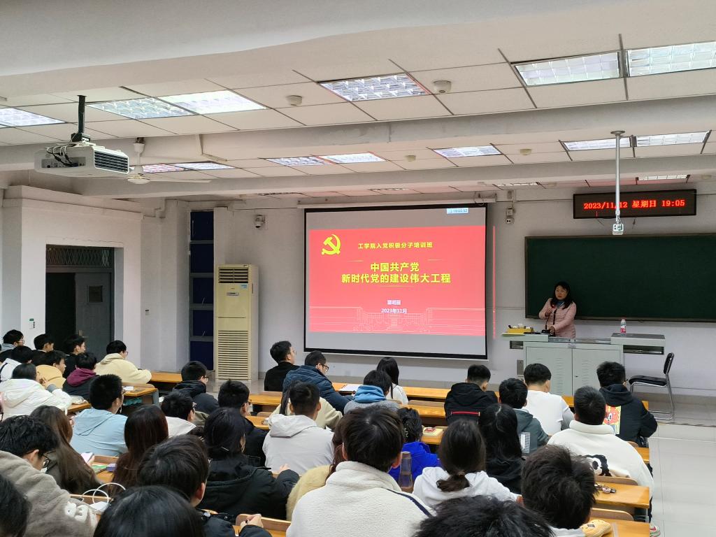 接下来,瞿明丽老师给积极分子们讲授了“中国共产党新时代党的建设伟大工程”专题党课。瞿明丽以《〈共产党人〉发刊词》引入课程,指出毛泽东同志第一次论述了中国革命胜利的“三大法宝”,第一次将党的建设称为“伟大的工程”。她给同学们逐一解析了中国历代领导人的指导思想及产生背景和历史意义,并强调坚持推进党的建设新的伟大工程是实现中华民族伟大复兴中国梦的根本保证。