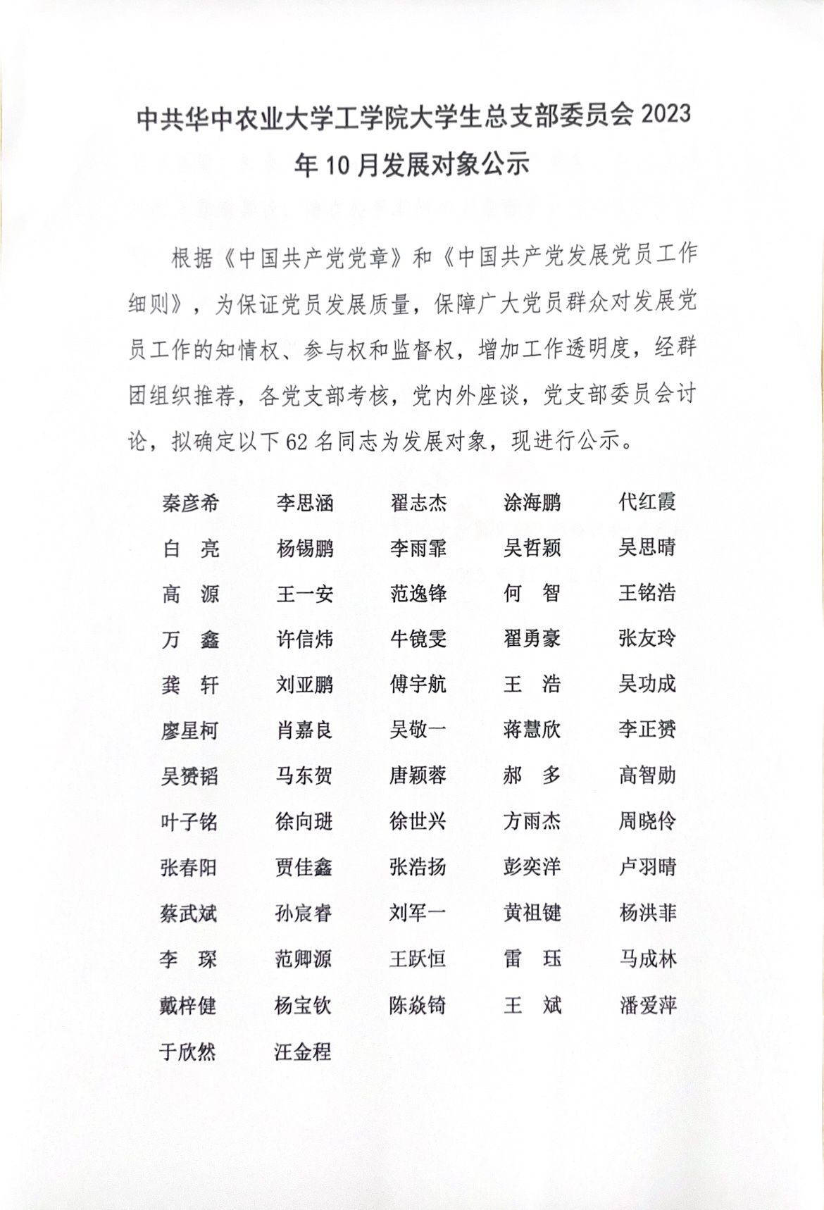 中共英国上市公司官网365大学生总支部委员会2023年10月发展对象公示