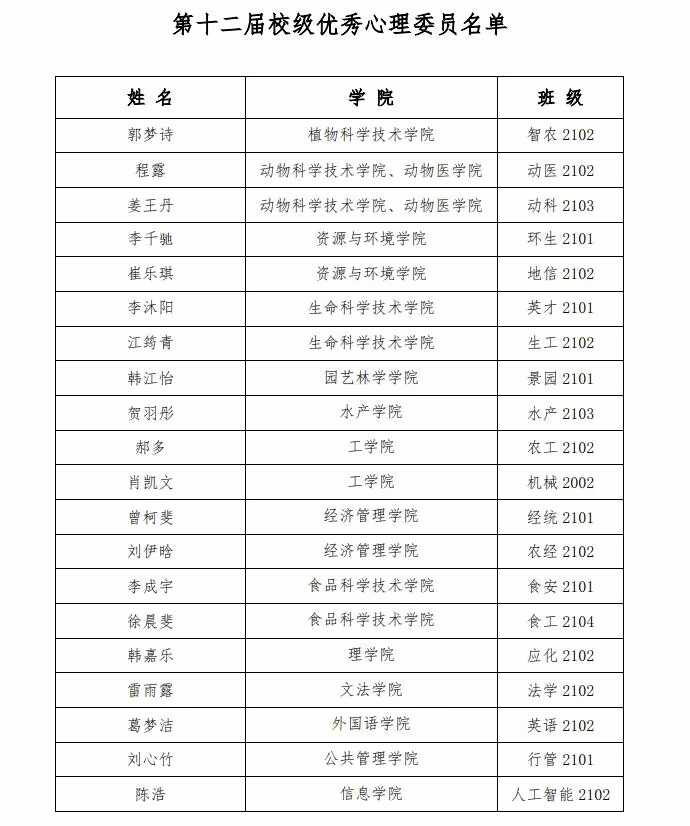 5月30日,学校发布通知,经个人申请、学院推荐、学校集体评议,英国365官网机械2002班肖凯文、农工2102班郝多荣获“英国上市公司官网365第十二届校级优秀心理委员”荣誉称号。