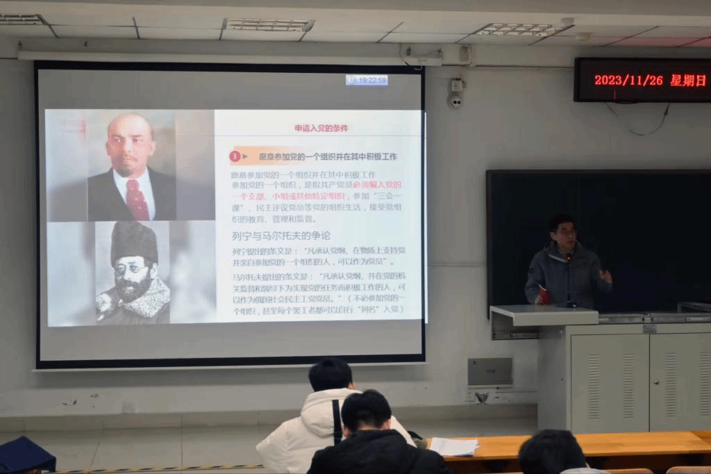 胡守强以提问的形式,让同学们思考“为什么入党”“成为党员后到底能做什么”的问题,并通过《中国共产党章程》中的内容,指出入党积极分子了解加入中国共产党的条件以及党员的权利和义务。