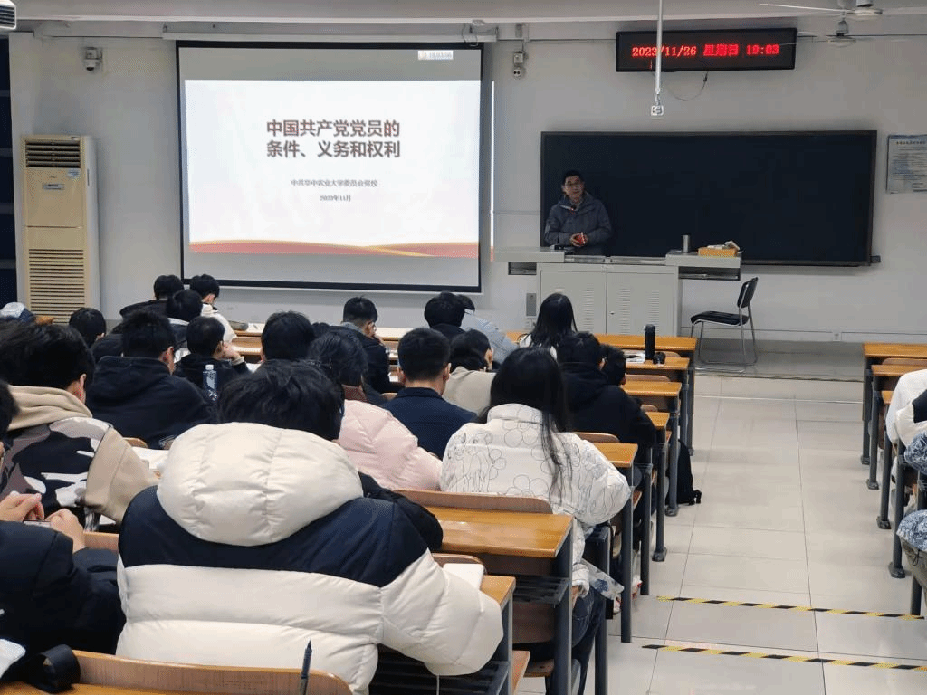 11月26日晚,英国上市公司官网365在三教B205开展第84期党校培训,学校党委巡查工作办公室主任胡守强老师为入党积极分子们讲授“中国共产党的党员条件、义务和权利”的专题党课。